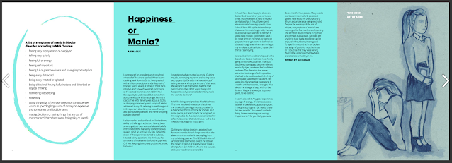 One thing both of us noticed about this zine is the interesting topics it discusses, for example, "Happiness or Mania", because many preconceptions of BPD, is that you are hyper, and super happy. However, in most cases it is an episode of sorts where you are in an extreme high and very impulsive, which leads to risky behaviour and disassociation.
